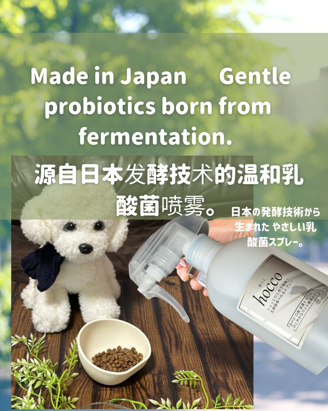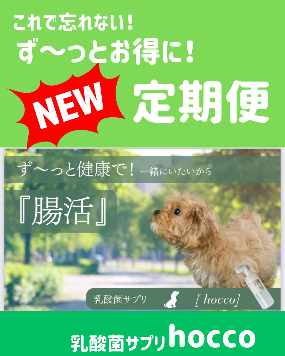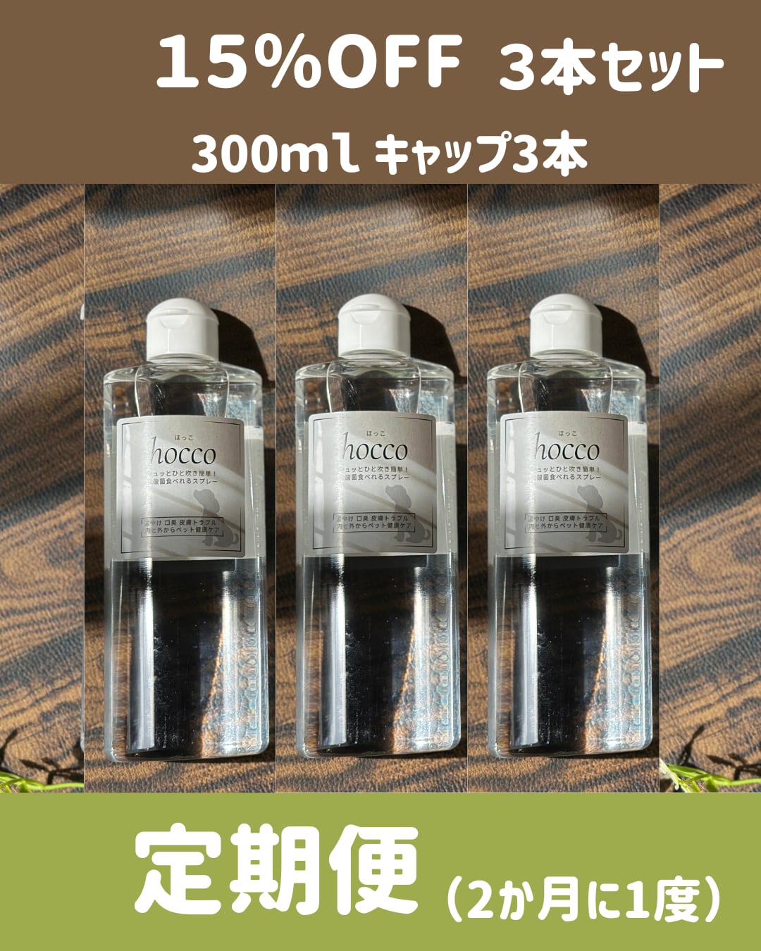 手軽にお使いいただけるhocco300ミリのスプレーが、2か月ごとに自宅に届く便利な定期便です。忙しい日々の中でも、ず~っと健康で元気でいてほしい大切なワンちゃんのためのサポートになります!