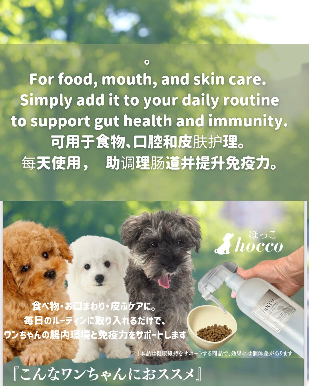 ず~っと健康で元気を大切にしたいワンちゃんに、hocco500ミリの定期便をおススメします。